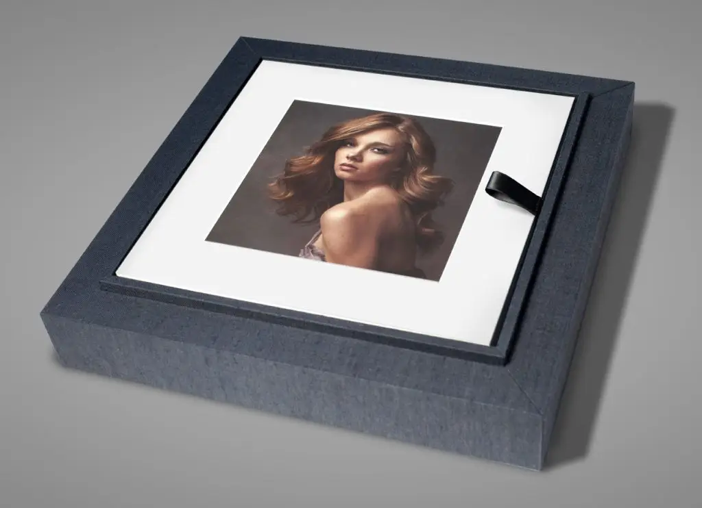 Discover our Portrait box, a treasure trove that elegantly houses 10 to 30 beautifully mounted images. The box cover also showcases an image of your choosing, making it a visual delight even before it’s opened.